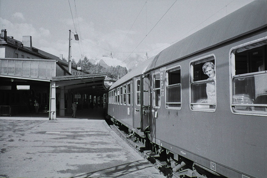 Das Bild im Beitrag zeigt meine Mutter in jungen Jahren, wie sie meinen, damals wahrscheinlich ebenso jungenhaften Vater, in Berchtesgaden besuchte. Hierhin fuhr er, nach einer schweren kriegsbedingten Lungentuberkulose, regelmäßig zur Kur. Ich stelle mir vor, wie sie mit dem Zug aus München die letzten Kilometer fährt, am Schluss durch das Reichenhaller Becken an der Saalach entlang; dann noch ein kurzer Halt in der Salz- und Solestadt Bad Reichenhall. Der Schaffner pfeift nun im Bahnhof unter dem mächtigen Predigtstuhl seinen letzten Abfahrtspfiff und schon geht es mit Volldampf die abschließenden 236 Höhenmeter zum 1888 erschlossenen Bahnhof von Berchtesgaden hinauf. Ich stelle mir vor, wie sie erwartungsvoll aus dem Fenster schaut, es womöglich an dem warmen Sommertag nach unten schiebt. Der Zug ist pünktlich. Abends zuvor hatten sie vielleicht telefoniert, er hatte versprochen sie abzuholen. Die Vorfreude ist ihrem Gesicht nun deutlich anzusehen. Und die glücklichen Erwartungen ebenso. Wird sie meinen Vater auf dem Bahnsteig entdecken? Sie hebt ihren kleinen Reisekoffer von den goldfarben lackierten Ablagen herunter, wobei ihr eine freundliche ältere Dame in Trachtenkleidung zur Hilfe kommen möchte, dann stellt sie sich, wie wahrscheinlich jeder zu dieser Zeit auf den schmalen Absatz über der die Abteile entlanglaufenden Heizung und streckt weit der Kopf aus dem Fenster. Tief atmet sie die spätnachmittägliche Frische ein, ein abkühlender Luftzug weht vom Königssee herüber.